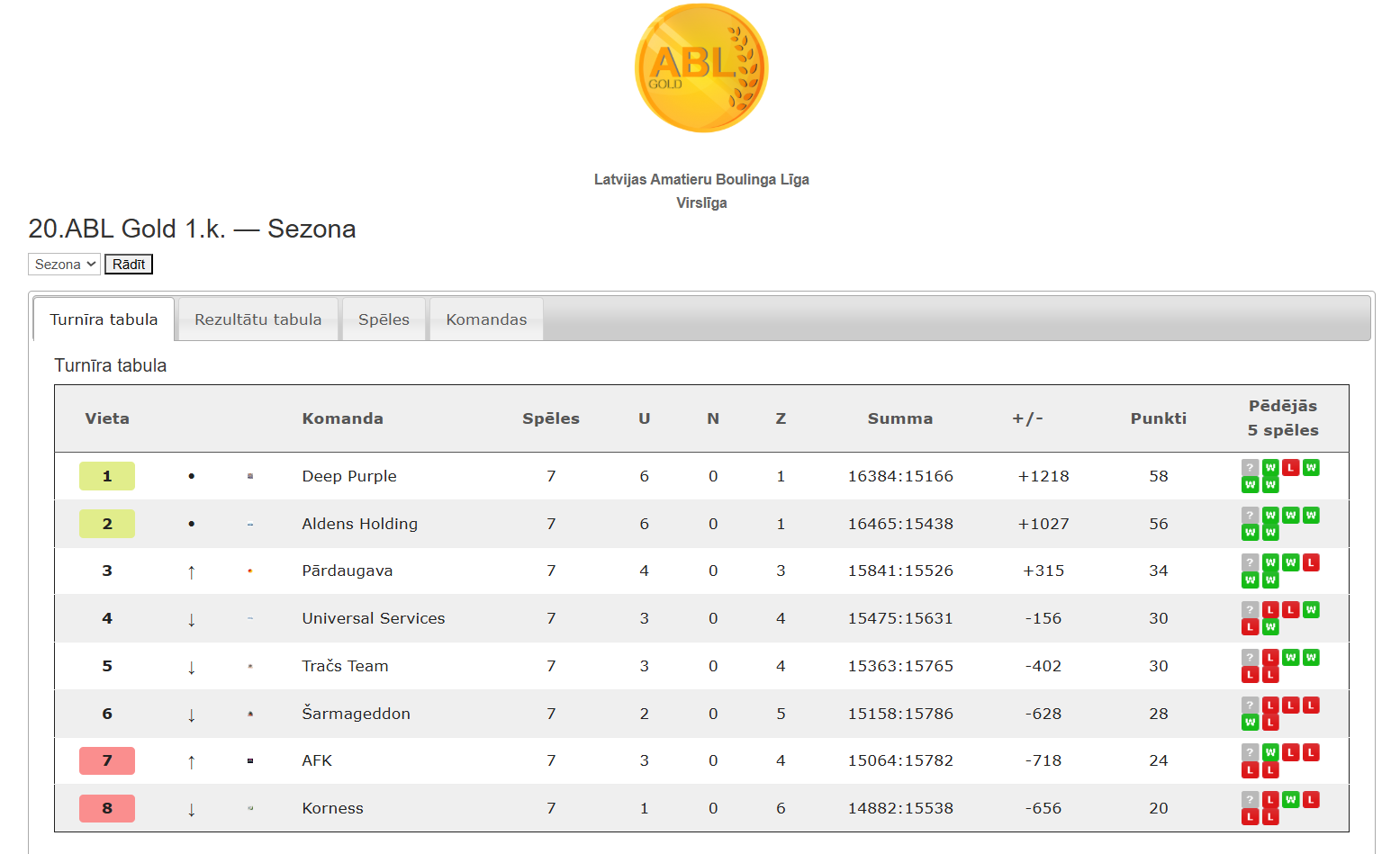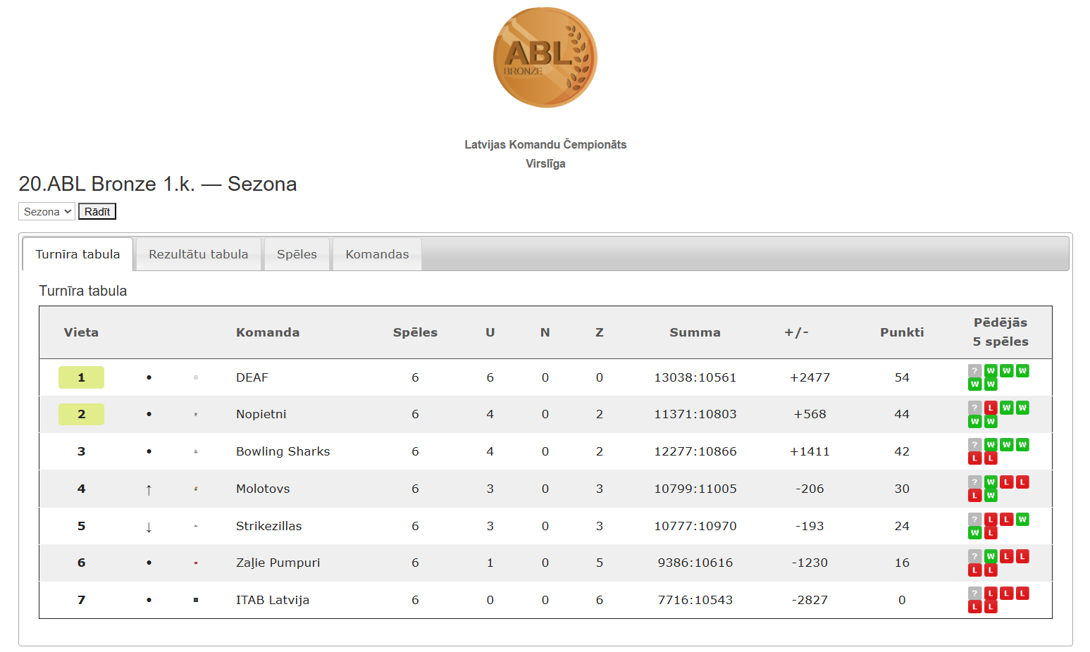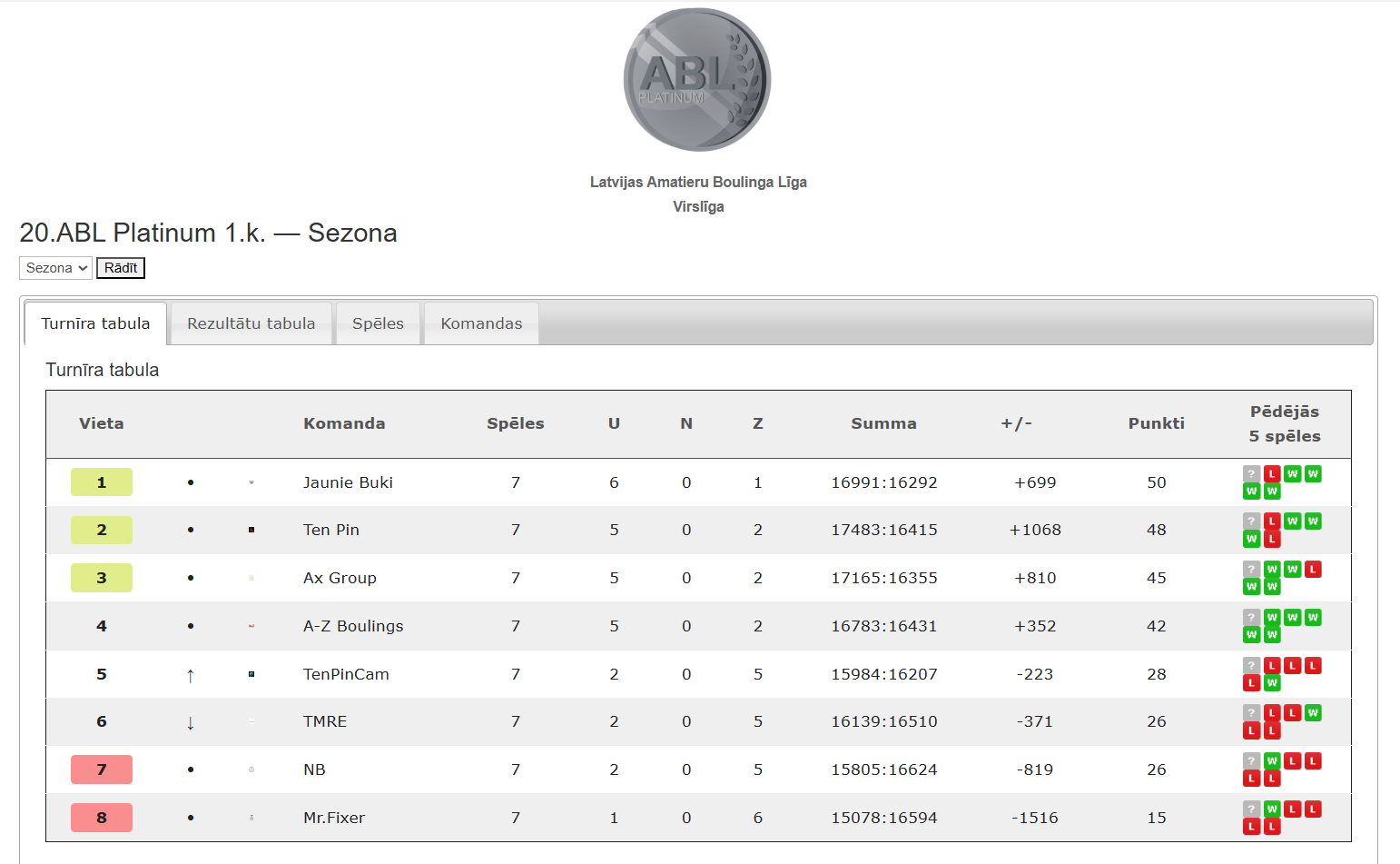 20.Amatieru Boulinga Līgas 1.kārtas rezultāti