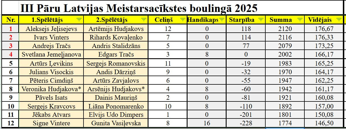 7. Minimālais spēlētāju skaits – 8 pāri.