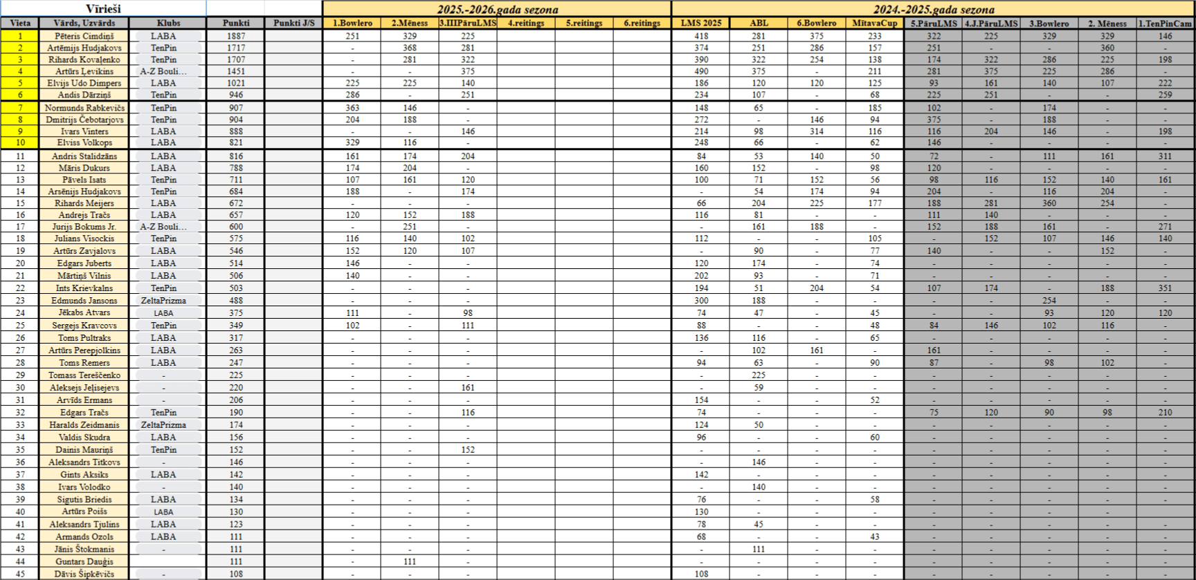 Latvijas Boulinga Fedrācijas sacensību kalendārs 2025/2026<<