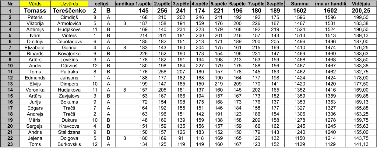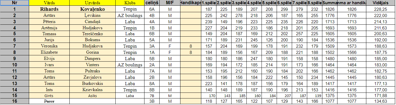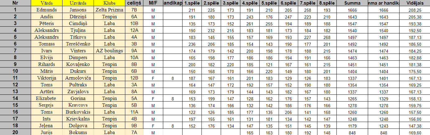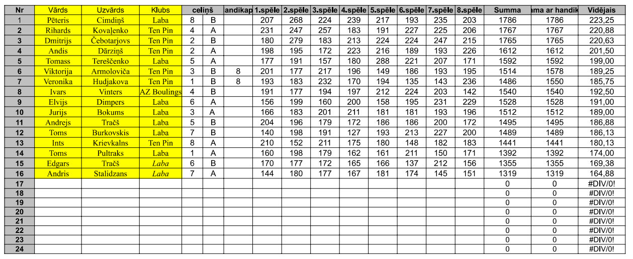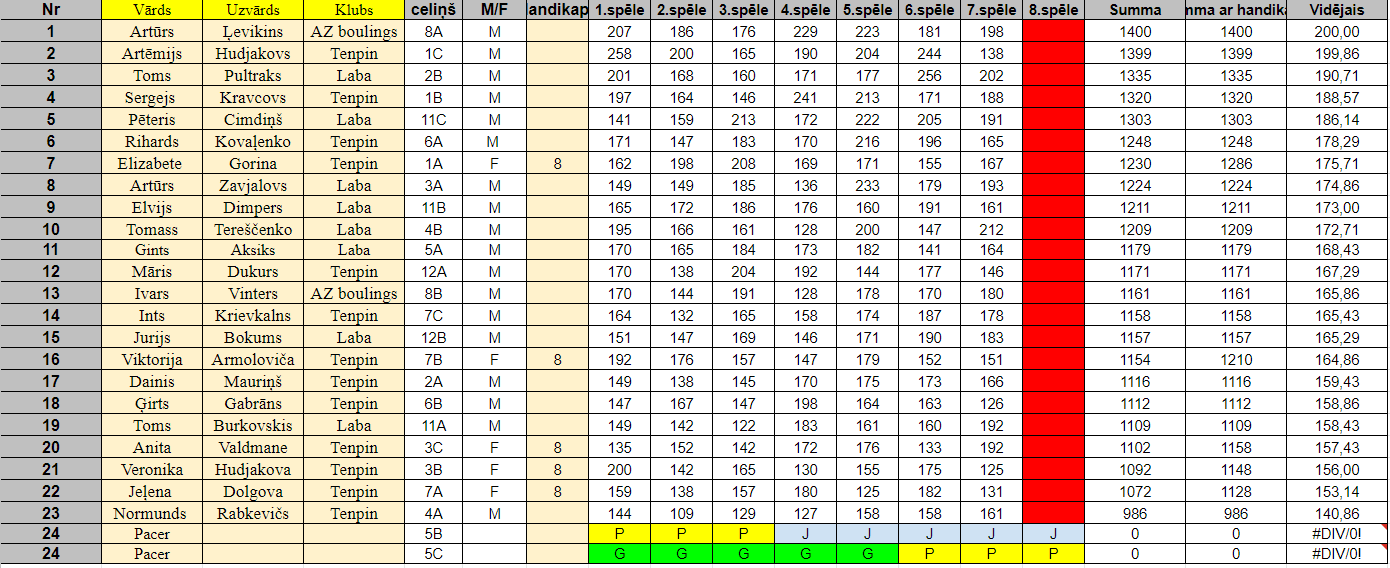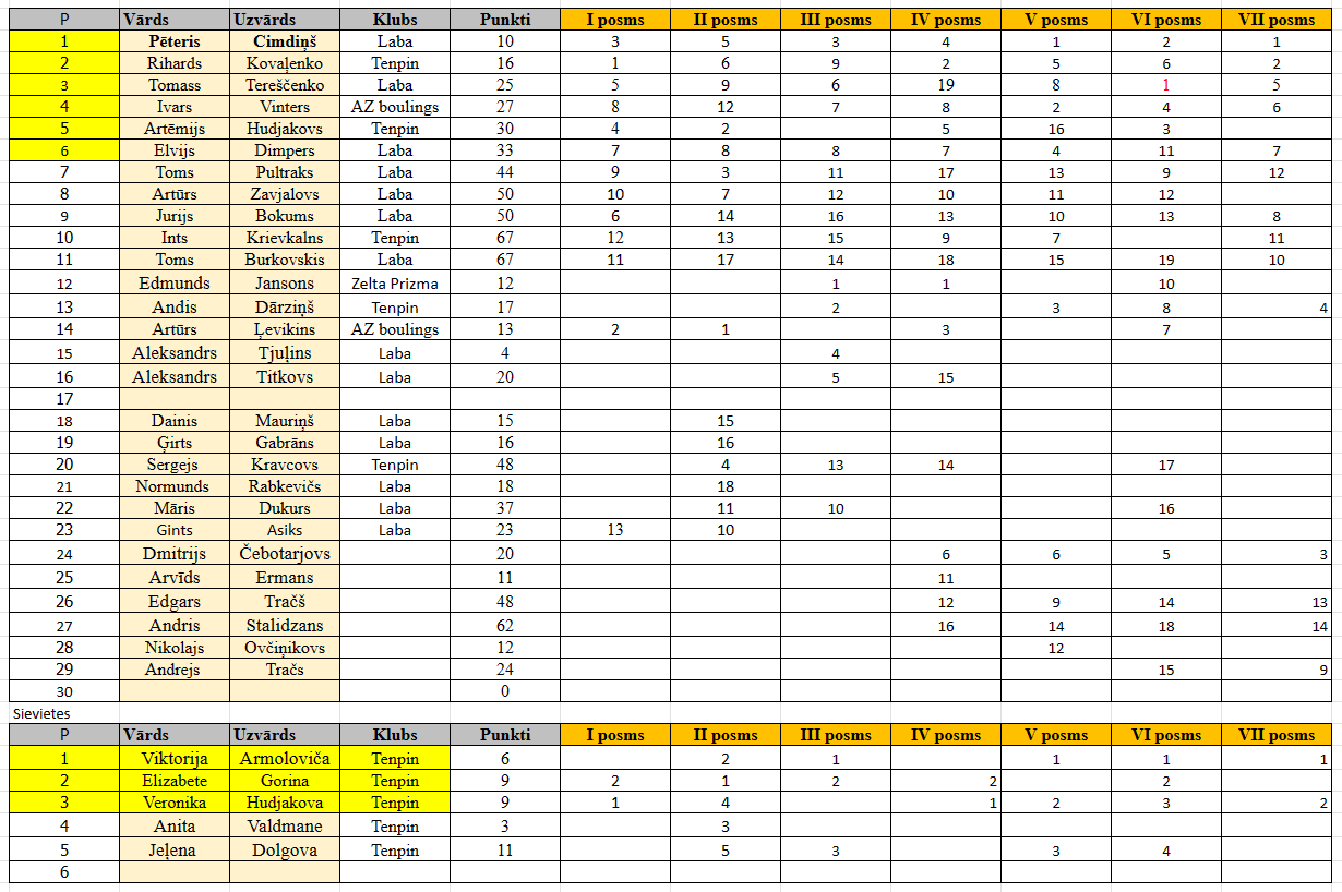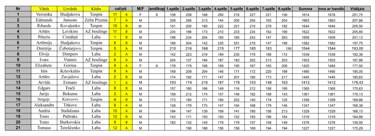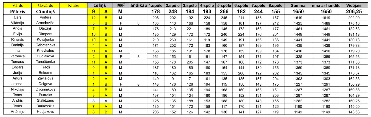Reģistrētie spēlētāji/as un REZULTĀTI: Latvijas Boulinga Federācija