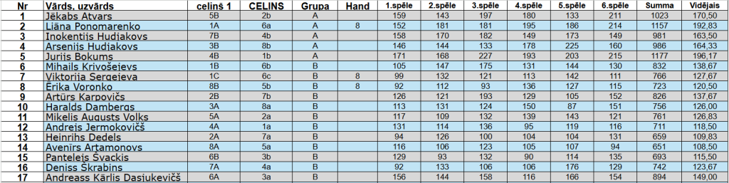 Reģistrētie spēlētāji un rezultāti: >> REZULTĀTI <<