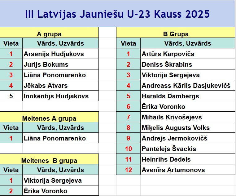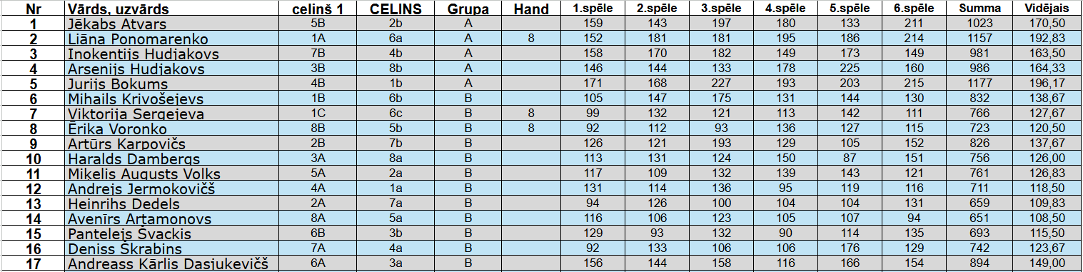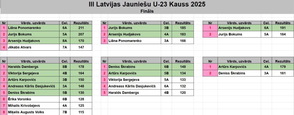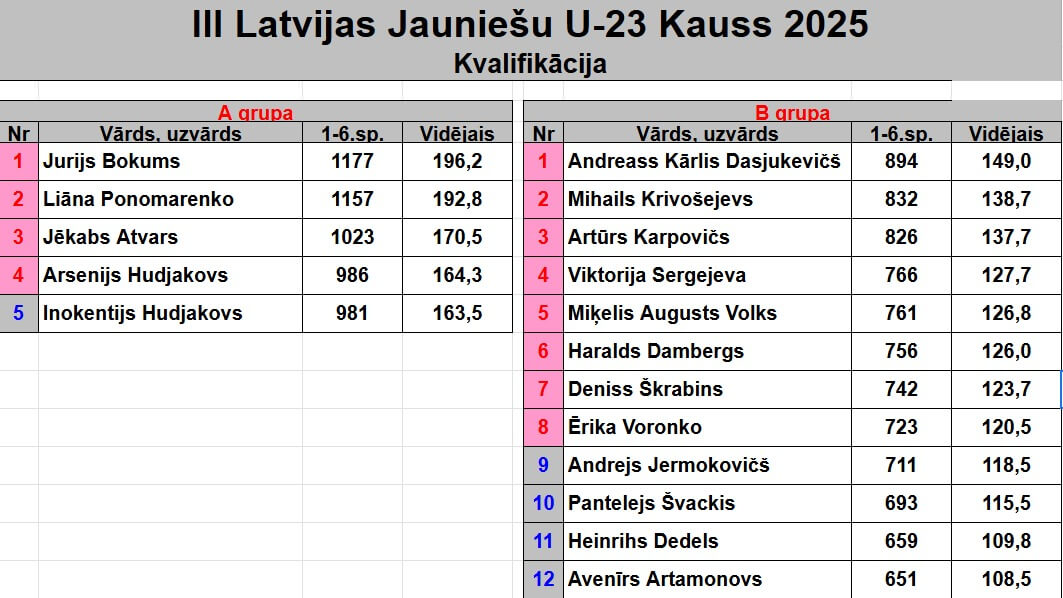 Saite uz iepriekšējā gada rezultātu failu: Latvijas Jauniešu (U-23) Kausa izcīņa boulingā.