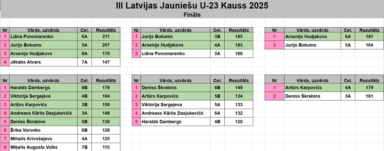 Saite uz 2023. gada rezultātu failu: Latvijas Jauniešu (U-23) Kausa izcīņa boulingā.