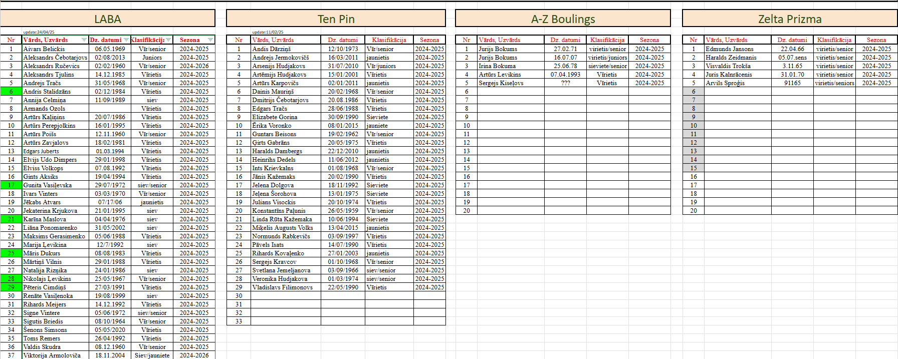 1.1.7. Klubu organizētās sacensības un boulinga līgas, ja tajās piedalās vismaz 25 spēlētāji.