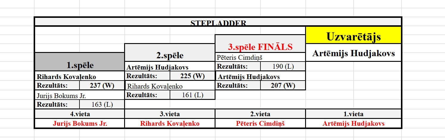 5. Fināli (TOP 4) – “Stepladder”: 21:15-22:30