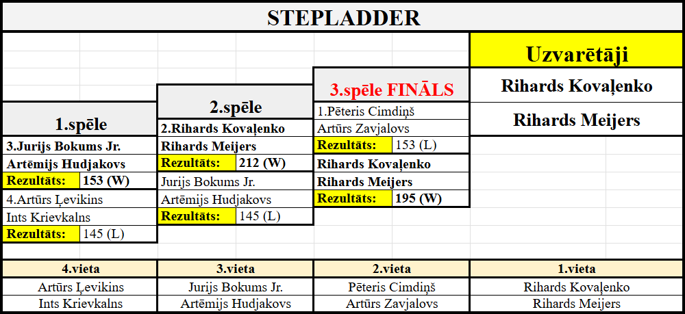5. Fināli (TOP 4) – “Stepladder”: 21:15-22:30;